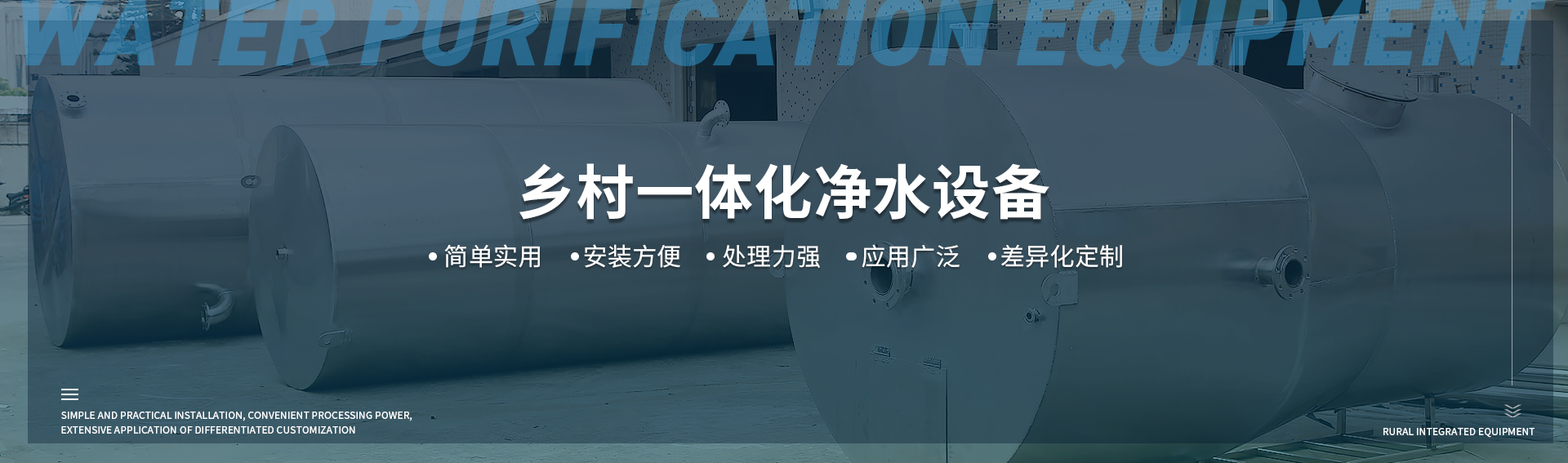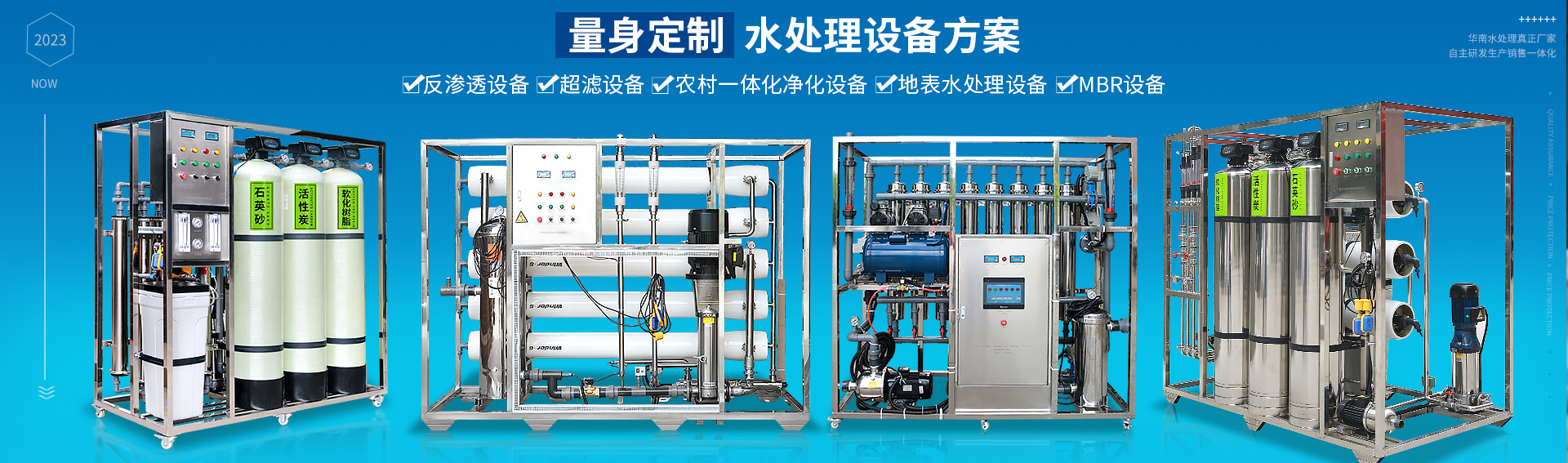 水處理設備種類多,客戶可有多種選擇方案,如:反滲透設備,超濾設備,農(nóng)村一體化凈水設備,地表水處理設備,MBR設備,實驗室設備,商用酒樓直飲水設備。